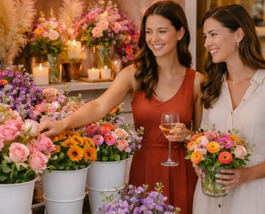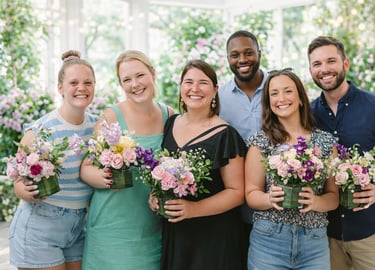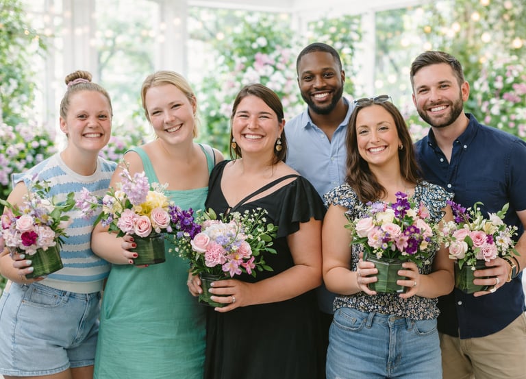Our guided floral workshops are instructor-led experiences designed to engage and inspire. Offered in either a step-by-step format or a flexible drop-in style, these workshops can be tailored to fit your event flow, group size, and goals. Perfect for gatherings that value connection, creativity, and shared experience.